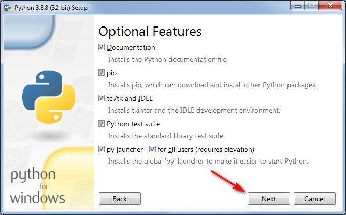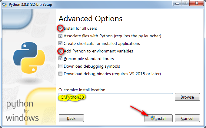 При установке Python в MS Windows важно отметить нужные галочки.
