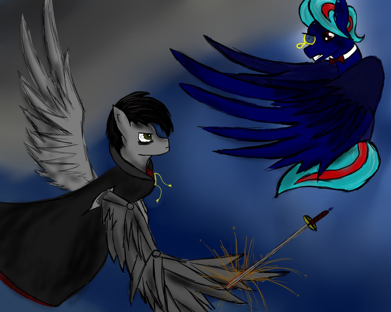 - Она же не пегас, насколько я помню, - задрал я голову в небо, в котором от тумана оставалась уже только лёгкая дымка. Под звуки "полёта валькирий" там кружило жуткое существо, тошнотворная смесь пони и зомби.